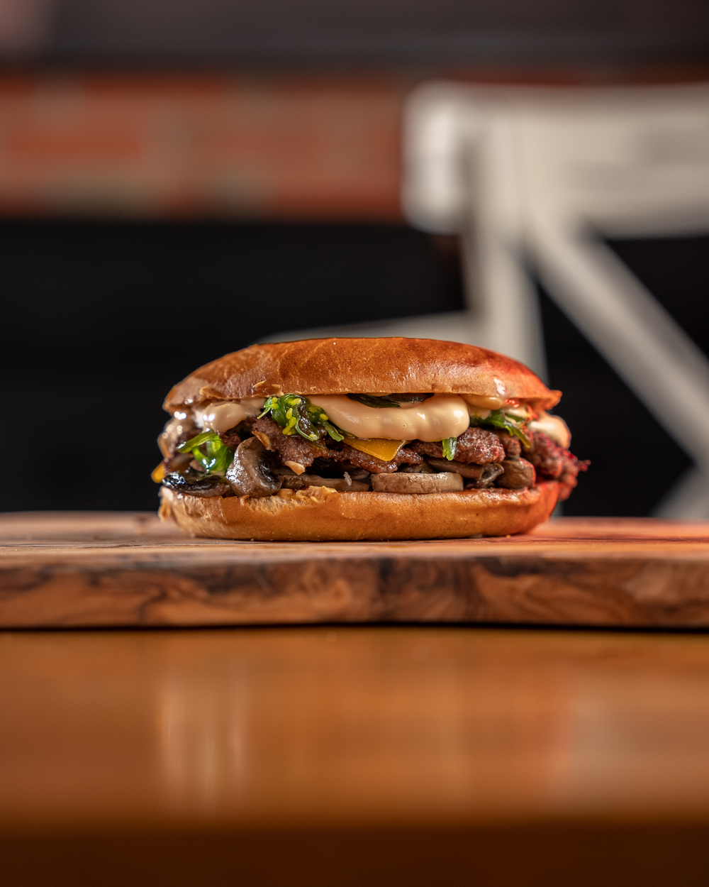 Bun brioché, Steak haché, Cheddar, Wakame, Champignons de Paris, Sésame et Sauce Japan.